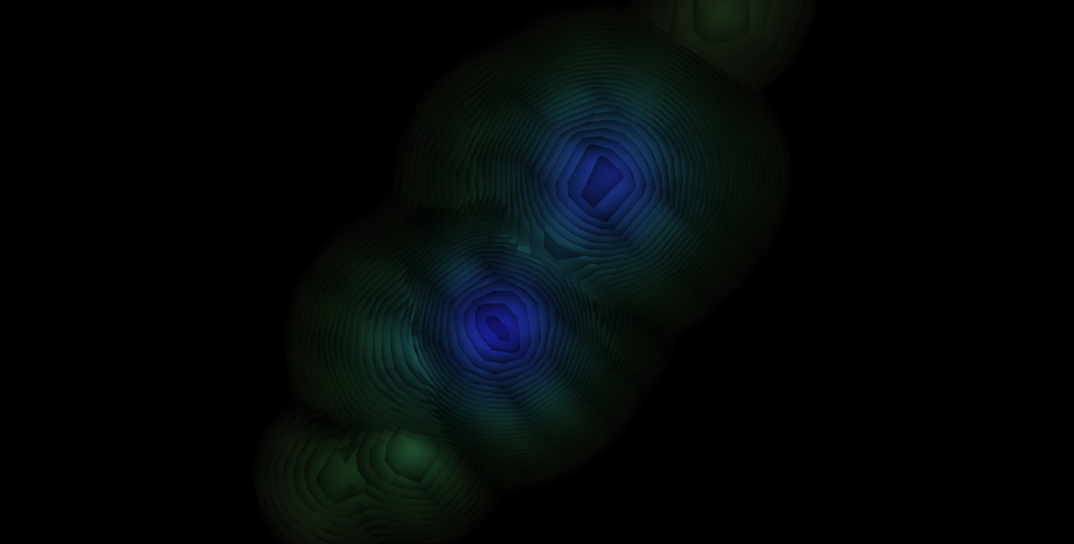 The 3D composite contours can be viewed here . . . Lastly, using “legacy” code from mylast project I rendered a few height maps of the data. These are only useful in that they show where spikes of em intensity occurred. As expected the em intensity dies off fairly quickly. The height maps can be viewed here . . .